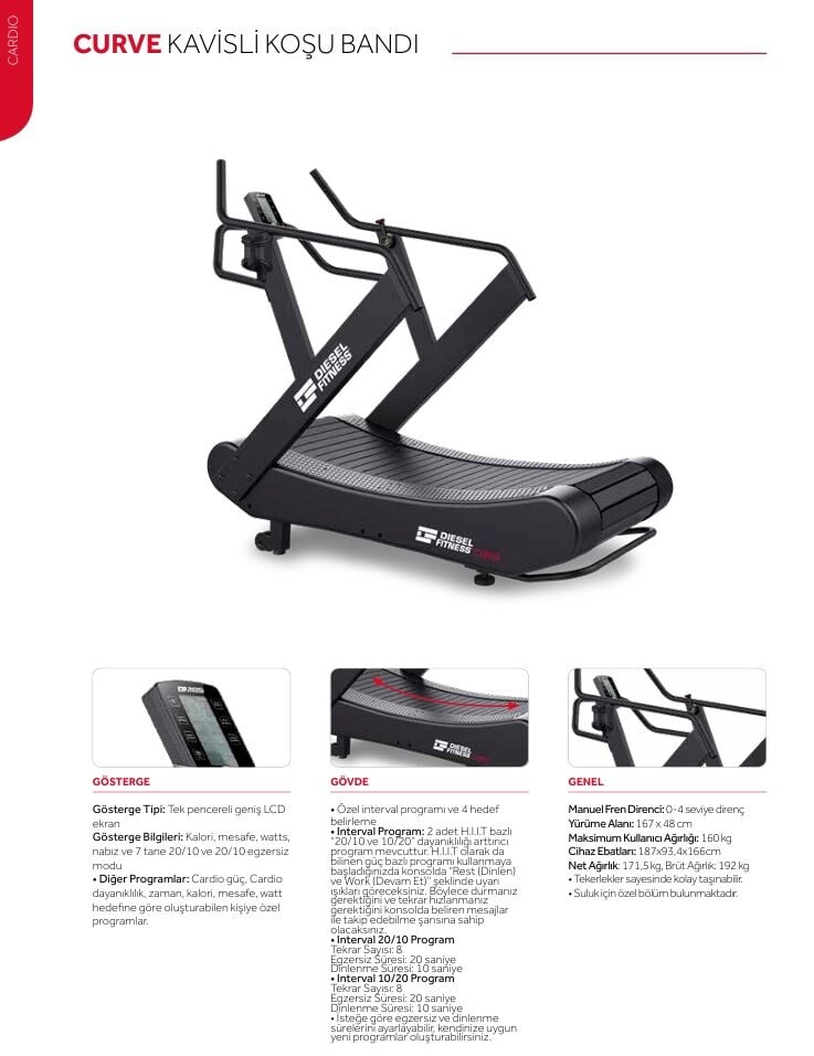 Diğer Programlar: Cardio güç, Cardio dayanıklılık, zaman, kalori, mesafe, watt hedefine göre oluşturabilen kişiye özel program.