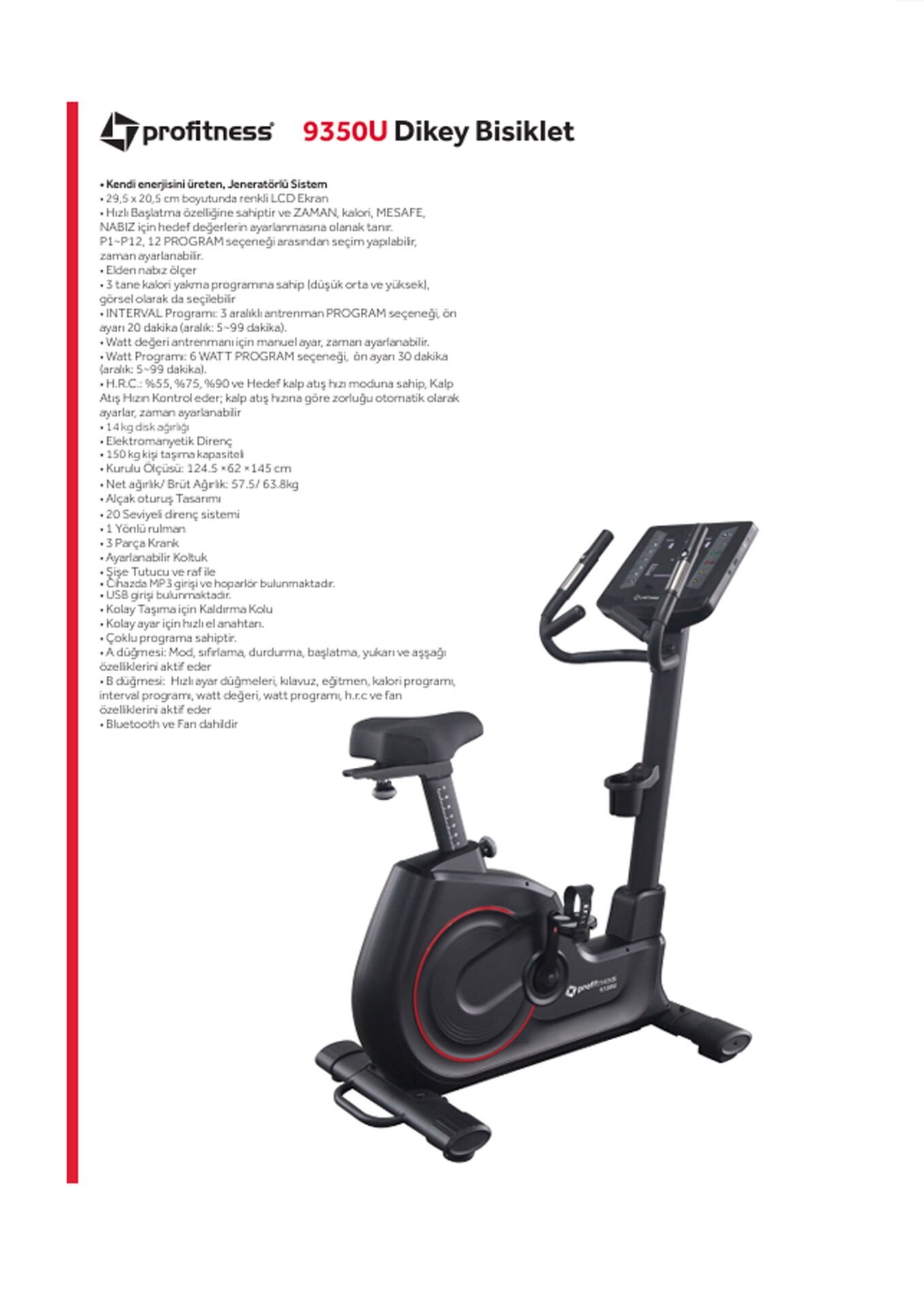 H.R.C.: %55, %75, %90 ve hedef kalp atış hızı moduna sahip, kalp atış hızını kontrol eder; kalp atış hızına göre zorluğu otomatik olarak ayarlar, zaman ayarlanabilir.