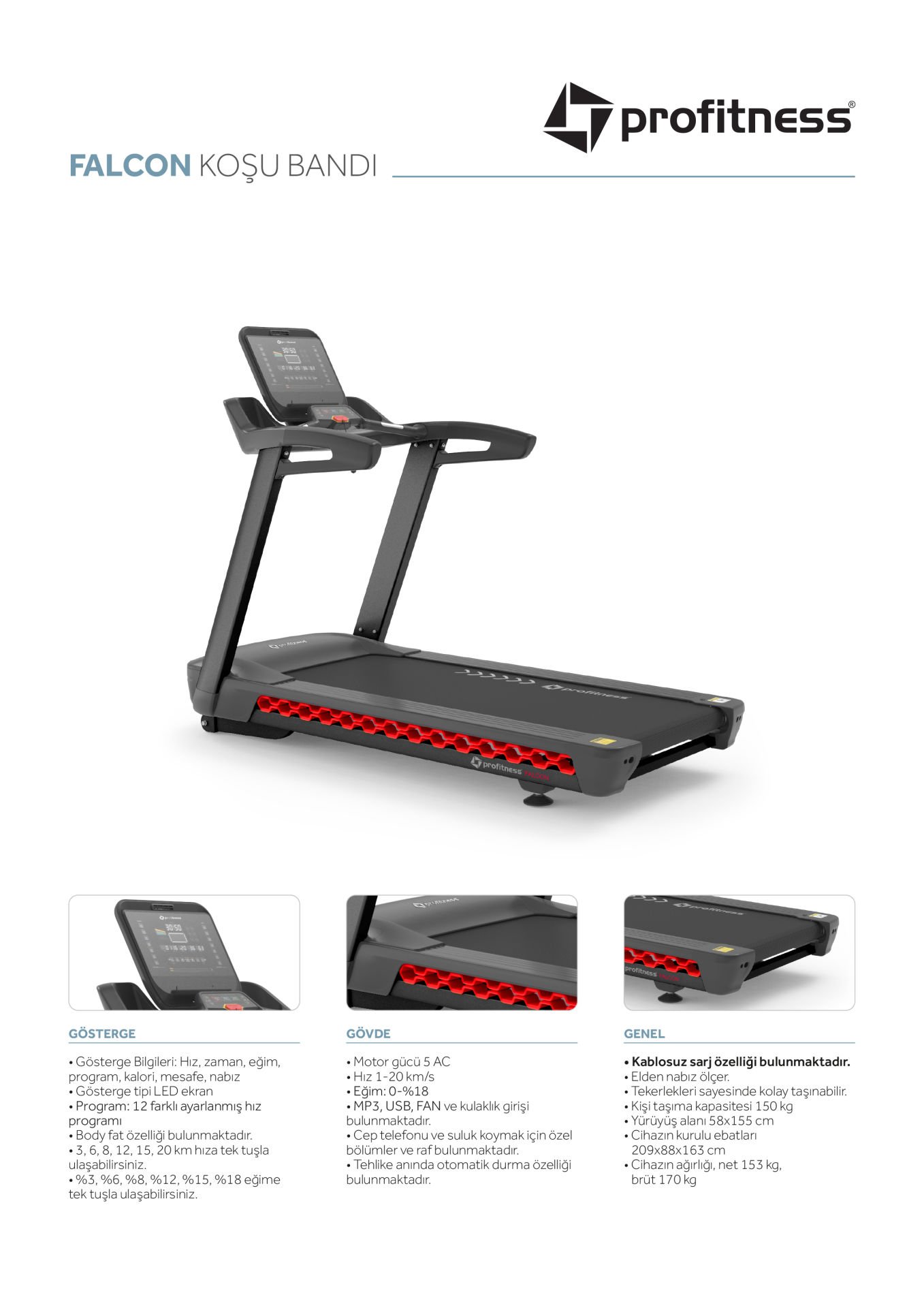 Gösterge Bilgileri: Hız, zaman, eğim, program, kalori, mesafe, nabız