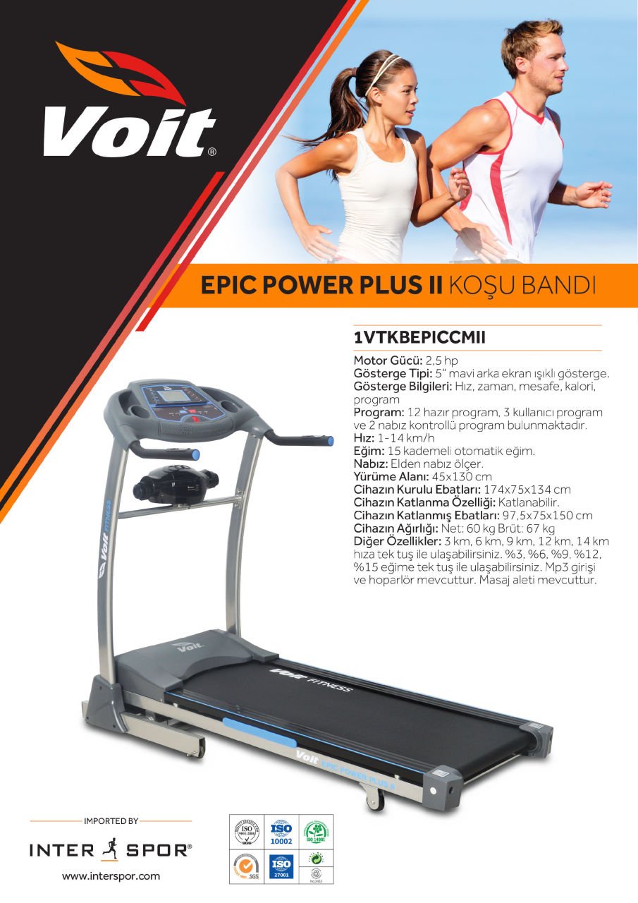 Program : 12 hazır program,3 kullanıcı program ve 2 nabız kontrollü program bulunmaktadır.