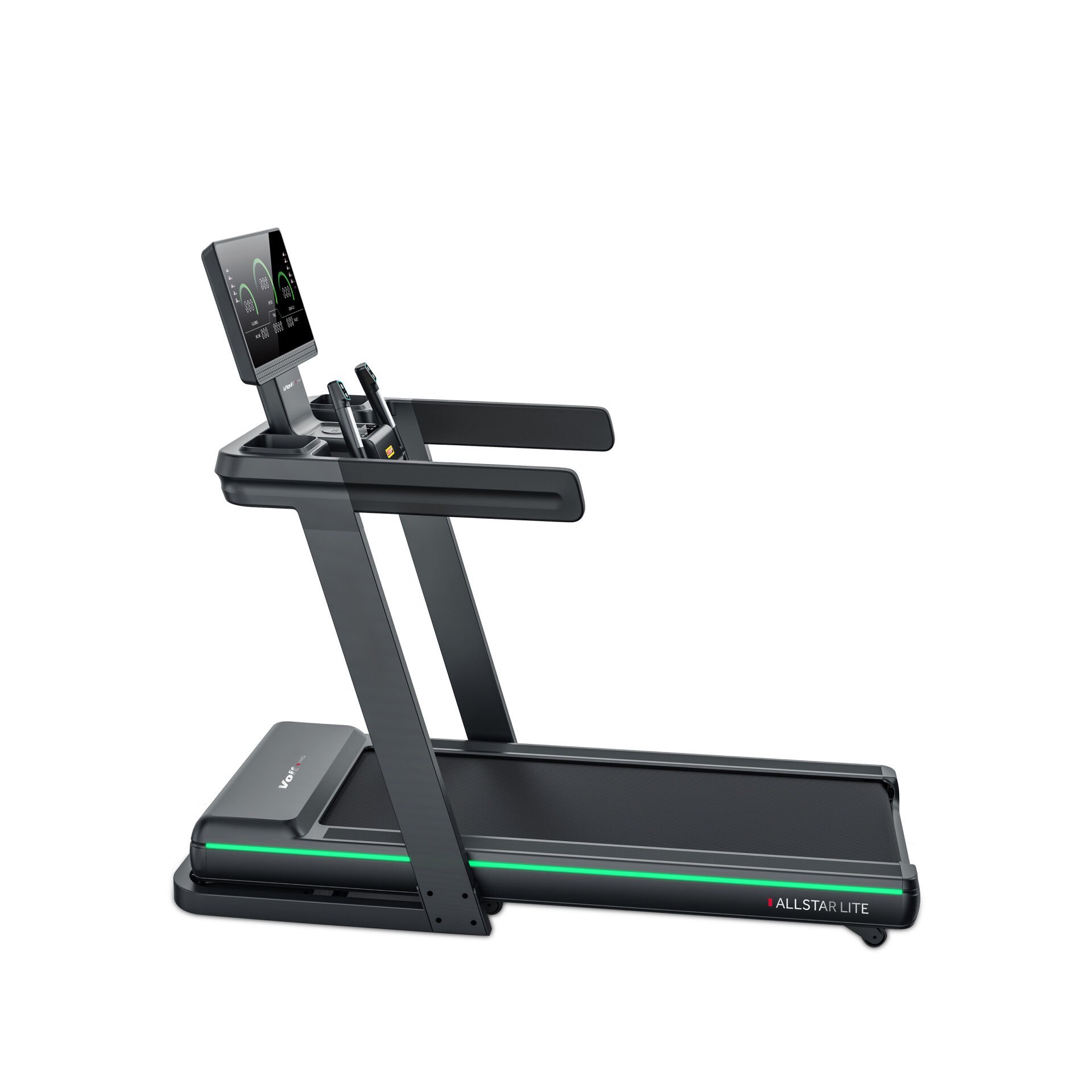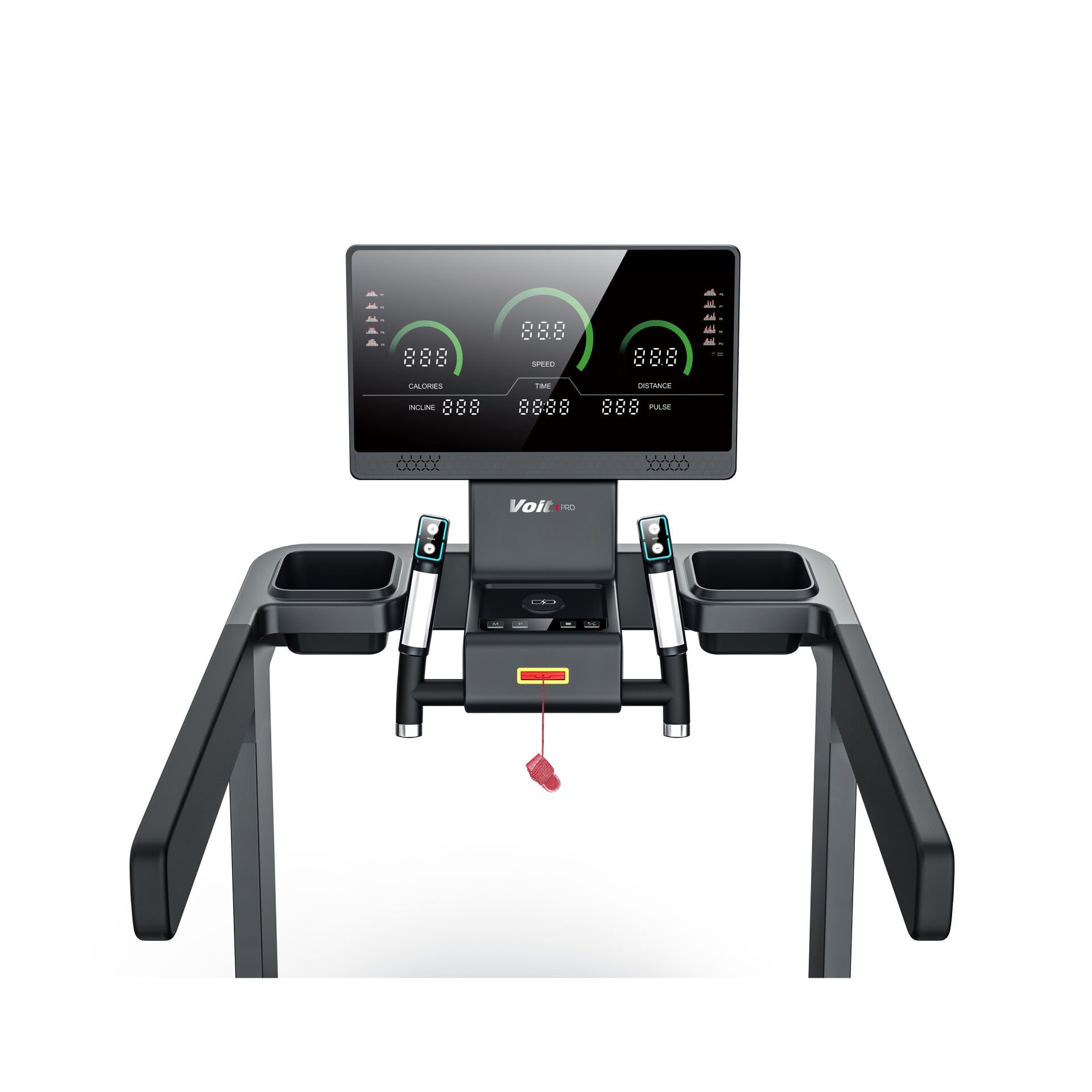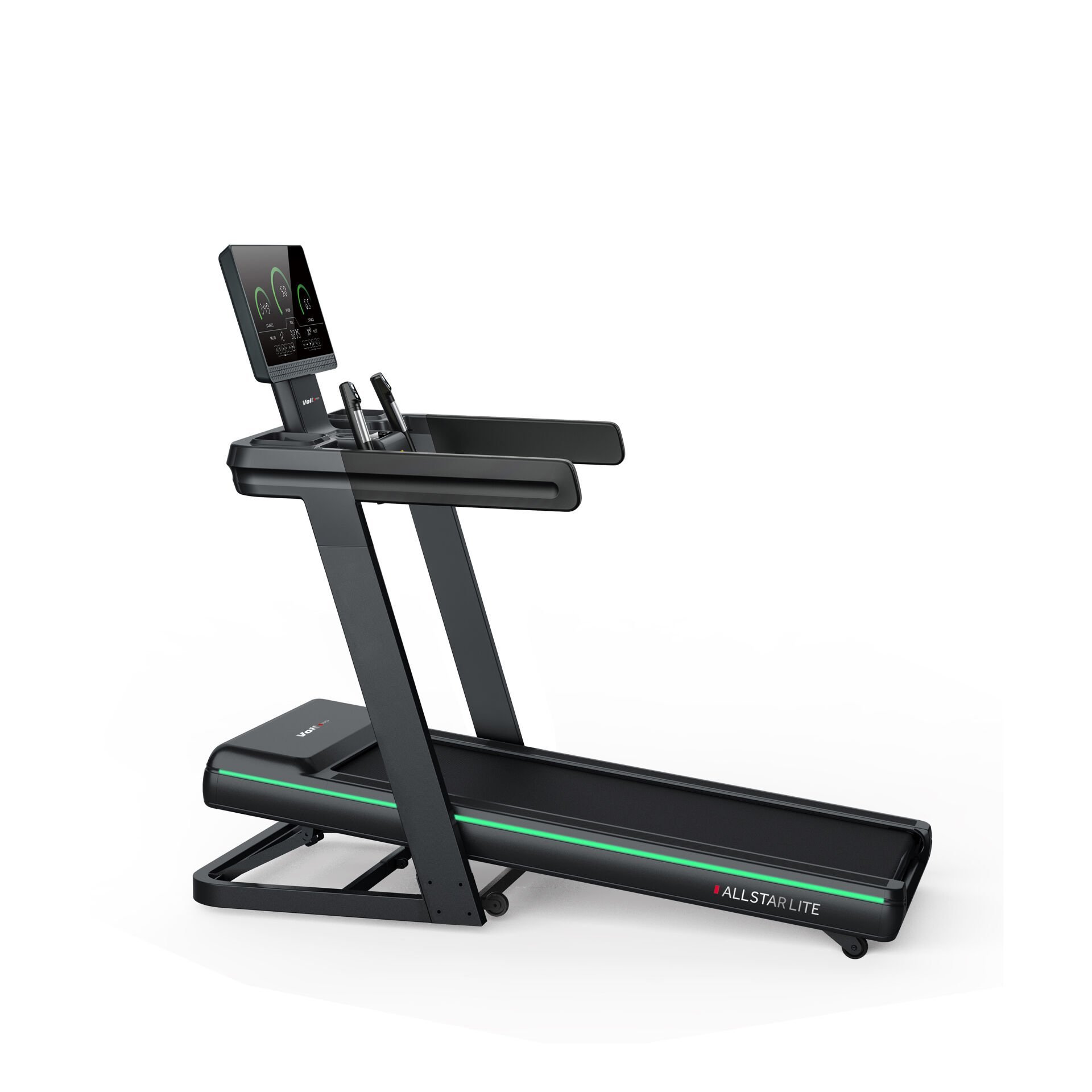 Koşu bandı ışıklıdır; ışık aktifken kırmızıya, kullanılmadığında ise yeşile döner.