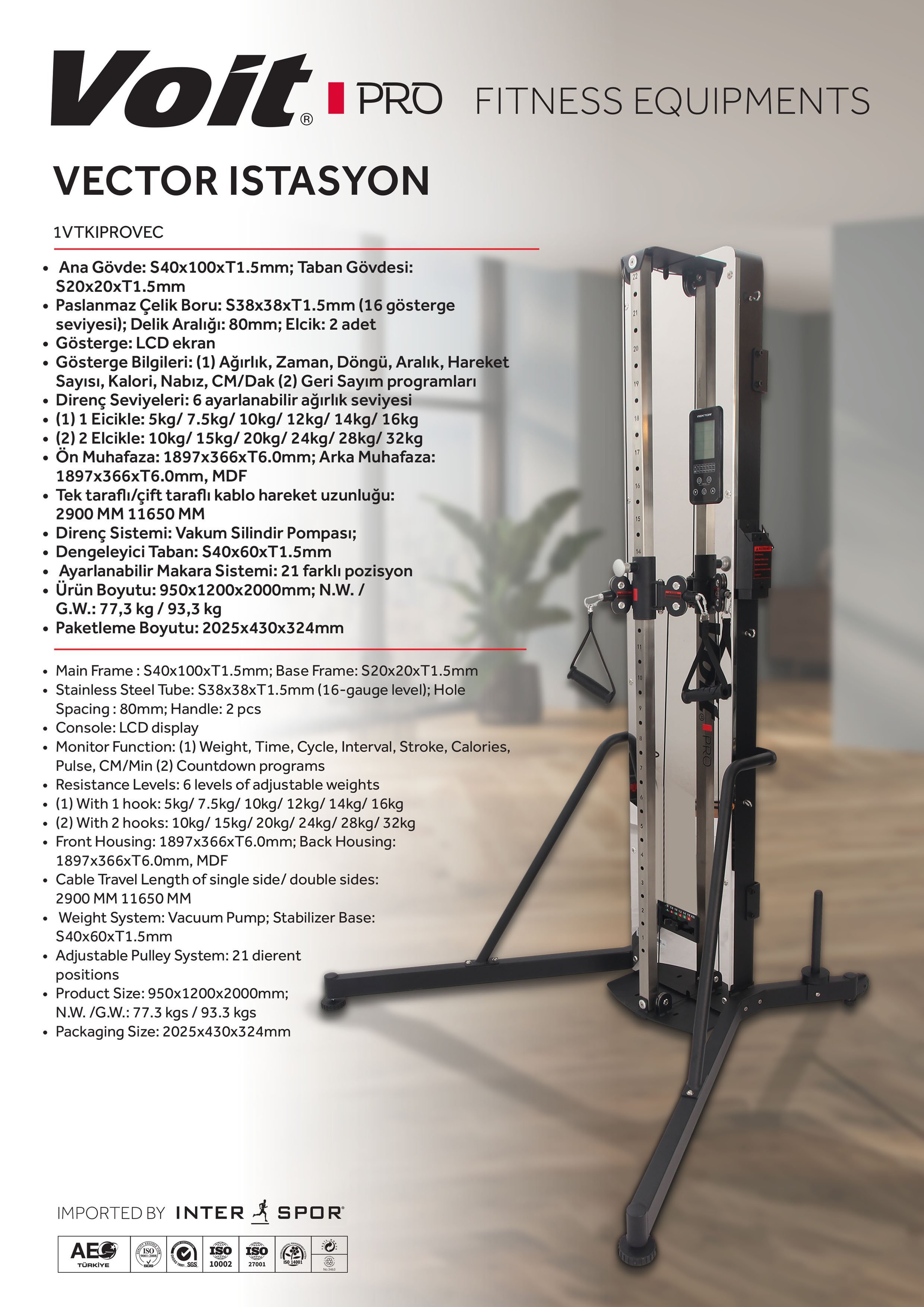 Gösterge Bilgileri: (1) Ağırlık, Zaman, Döngü, Aralık, Hareket Sayısı, Kalori, Nabız, CM/Dak (2) Geri Sayım Programları